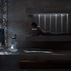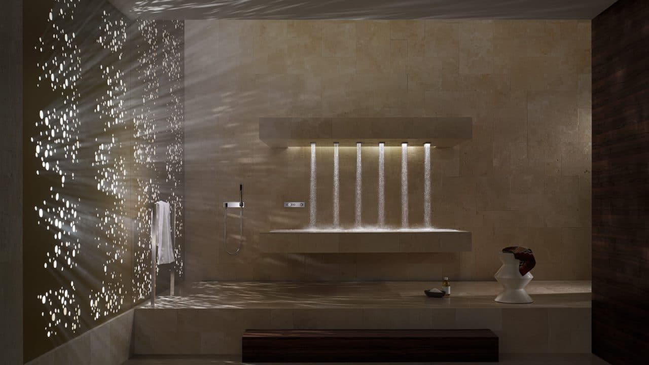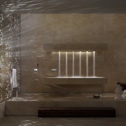 DORNBRACHT HORIZONTAL SHOWERATT (Горизонтальный душ) позволяет впервые принять душ лежа. Система включает в себя комбинацию шести форсунок WATER BARS, встроенных над лежаком. Центральным элементом управления является панель eTOOL. Три запрограммированных хореографии: успокаивающая (BALANCING), стимулирующая (ENERGIZING) или расслабляющая (DE-STRESSING).