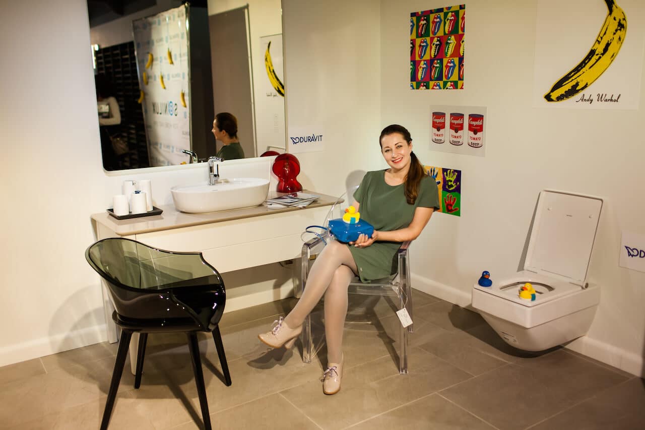 Буквально неделю назад на выставке iSaloni в Милане компания Duravit представила новую коллекцию мебели для ванной X-Square в разных цветах. Тумбы для ванной баклажанового цвета покорили всех. Яркость этой коллекции сантехники задала стилистику мероприятия – Pop Art.