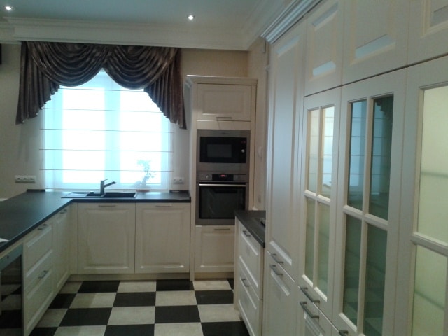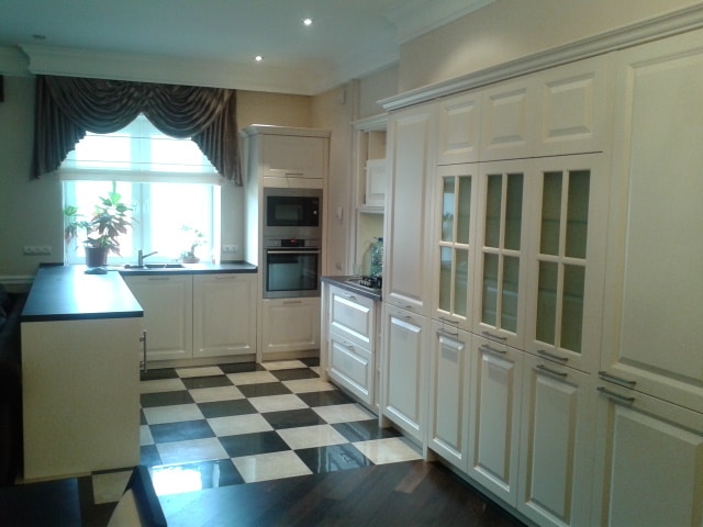 Особенностью данной кухни Ballerina является полуостров, который разграничивает зону кухни и гостиной, а также мойка, расположенная непосредственно под окном.