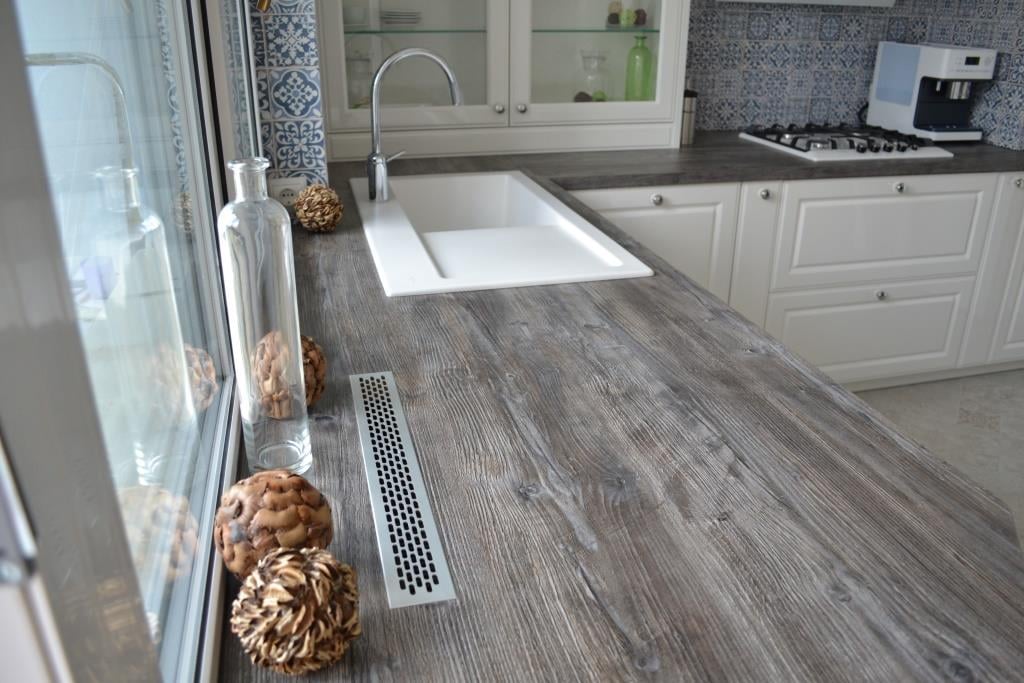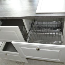 Столешница – ламинированная – новый цвет Jackson pine décor – снова акцент на прованс, имитация состаренной «обшарпанной» древесины! Смотрится очень колоритно и очень приятна на ощупь. Она заведена под окно, данное решение очень актуально для квартир с небольшой площадью. В столешнице сделаны специальные люки для вентиляции.