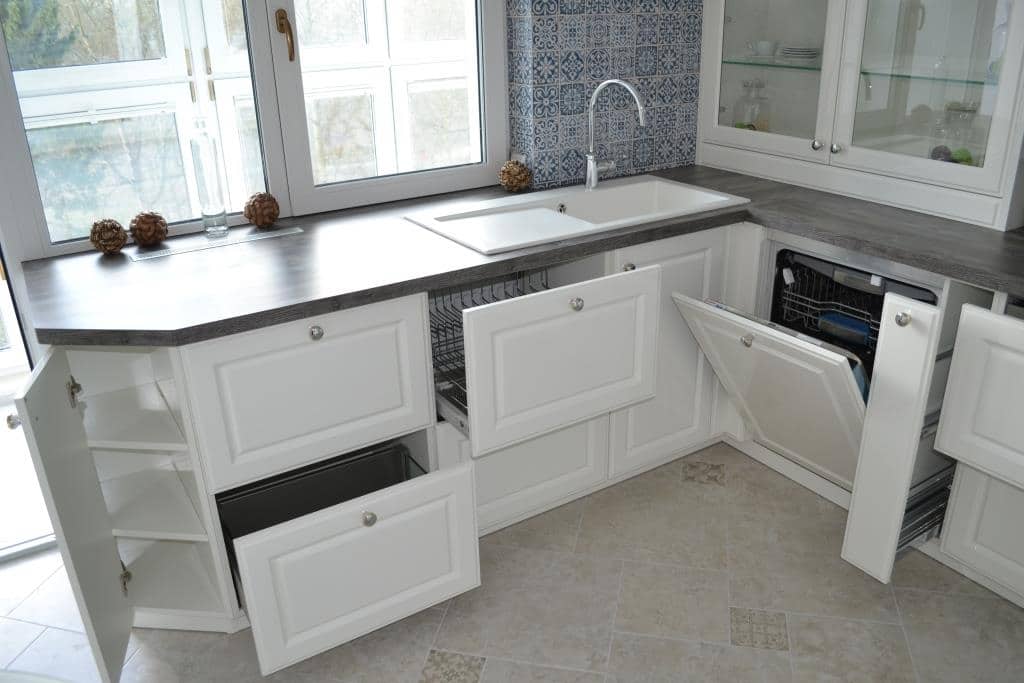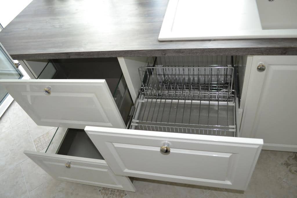 Хочу отметить, что новый фронт премиум-белый в классическом исполнении с филенкой, также доступен в 13 стандартных цветах глянцевого лака + 1800 цветов по RAL палитре, это означает, что Вы можете подобрать кухонный гарнитур или его часть к уже имеющейся у Вас мебели плюс воплотить любую дизайнерскую фантазию.