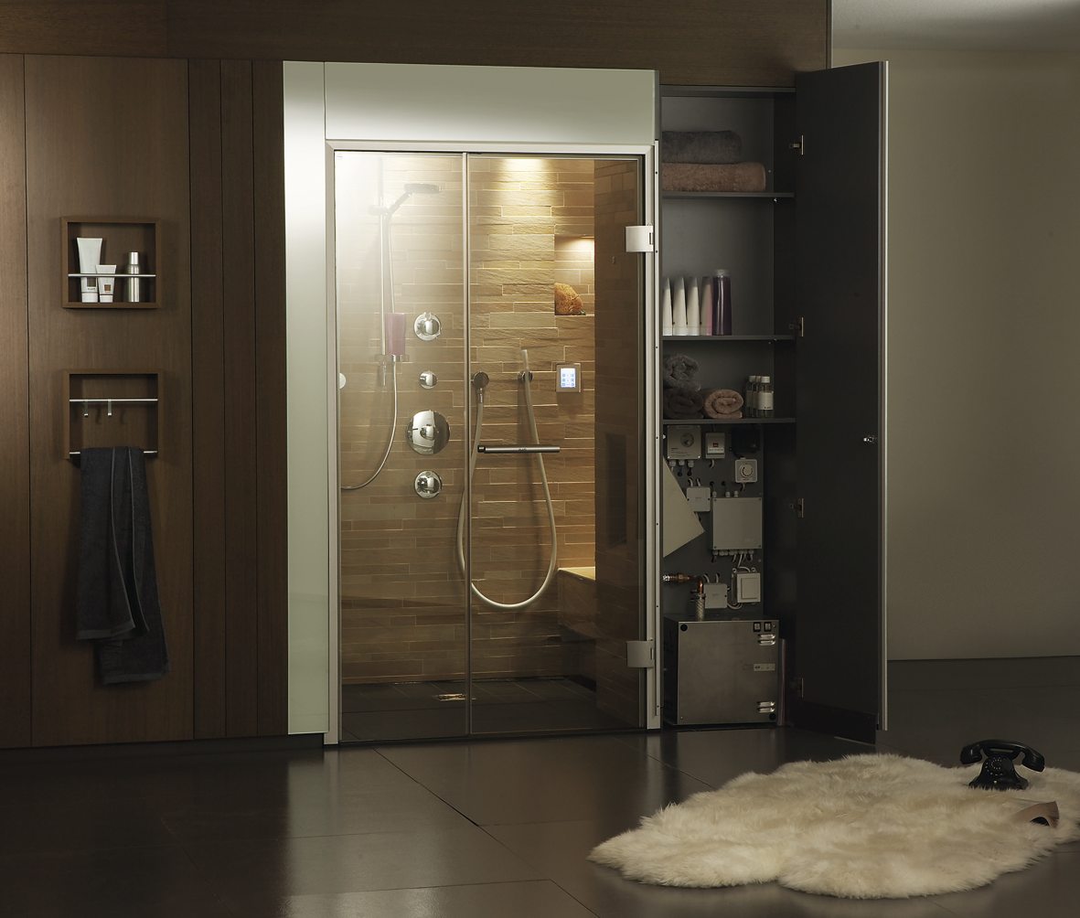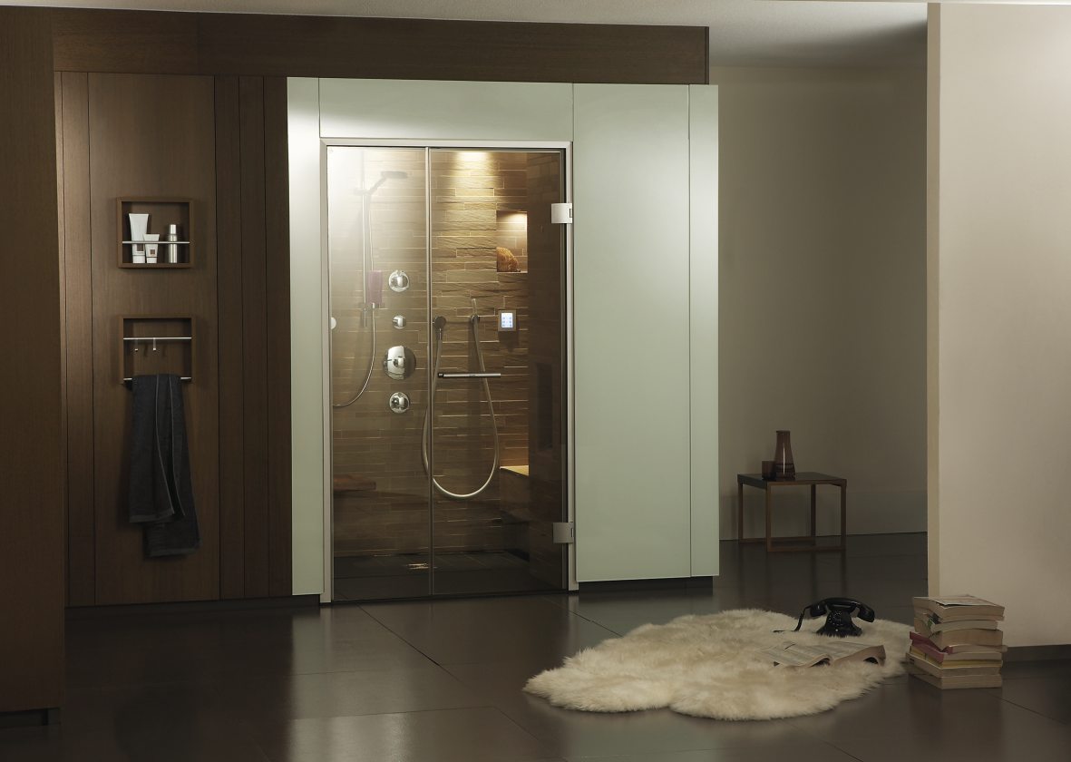 Garų dušas KLAFS VALLEY, kuriame užtektinai vietos dviems žmonėms, puikiai tinka jūsų vonios kambariui. Garų dušų dizainas yra aukščiausio lygio. Pagal poreikį KLAFS garų dušą VALLEY galite pasirinkti su medine nulenkiama sėdyne, apšviesta niša bei RAINMARKER.