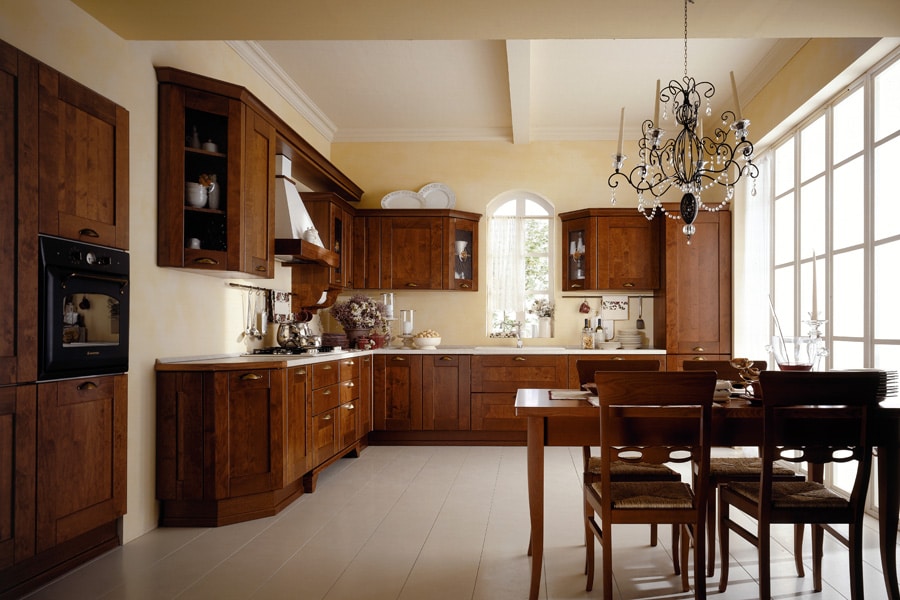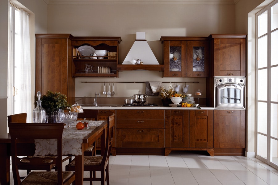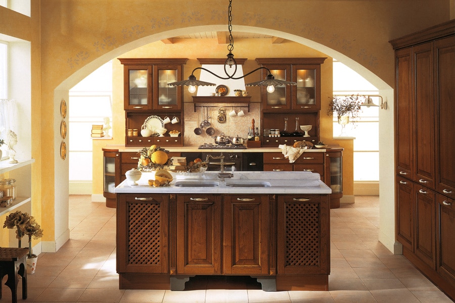 Кухня ARAN Greta приносит в дом колорит древности и античности. Возможность использовать элементы, выполненные с решетчатой отделкой фасадов, придает кухне ARAN Greta романтичность, а использование массива каштана, прочность и надежность.